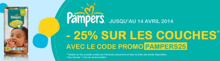 -25% de réduction sur les couches Pampers avec le code promo Pixmania : PAMPERS25 jusqu'au 14 avril 2014. Je n'y connais pas grand chose.. Que pensez-vous des prix remises déduite?