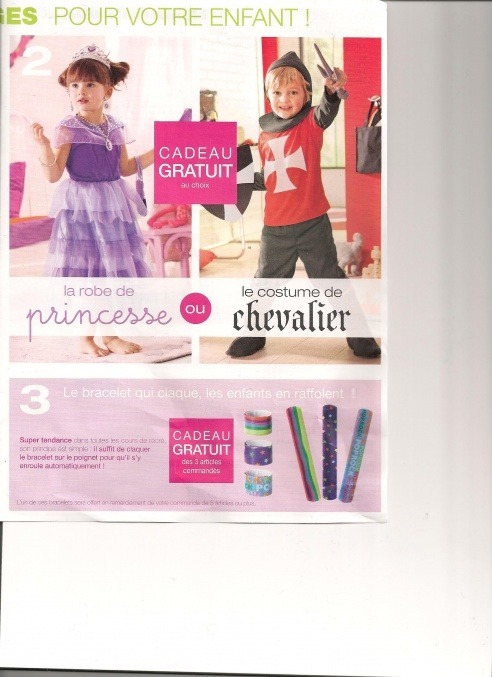 Il donne droit à un déguisement en cadeau et 11 euros pour 20 euros d'achats dans le petit catalogue joint "Enfin l'été mode enfant 2012" même sur les vêtements qui y sont soldés mais aussi sur le catalogue printemps-été 2012 même sur les prix bleu