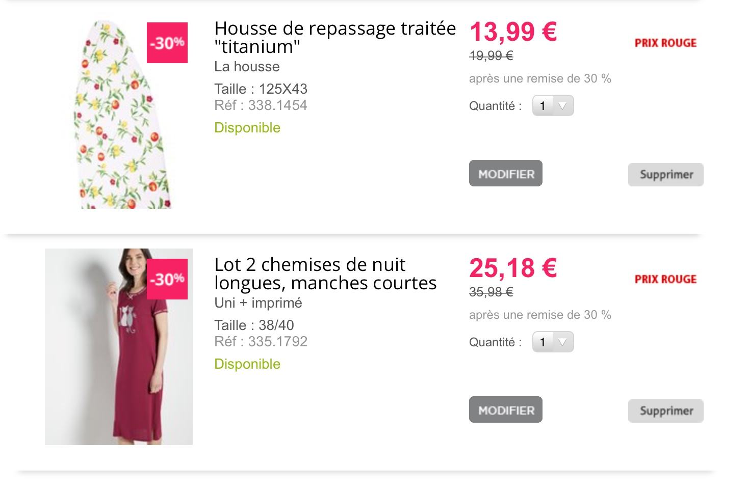 Tu m’as donné l’idée Boudj75 d’aller vérifier les confirmations d’anciennes commandes que j’ai passé. Certains articles sont épuisés mais j’ai trouvé 3 articles remisés toujours en stock que je partage au cas où ça intéresserait. J’ai testé et en tapant la référence dans le panier, ça les met bien à un prix remisé.