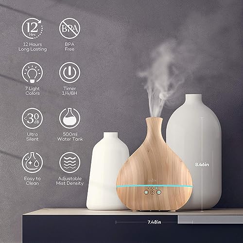 [deal amazon Anjou Diffuseur d'Huiles Essentielles 500ml, Design Réducteur de Bruit, 12H d'Autonomie, 7 Couleurs, 3 Minuteries, Premier Humidificateur à Ultrasons d'Aromathérapie à Système Breveté de Flux d'Huile]