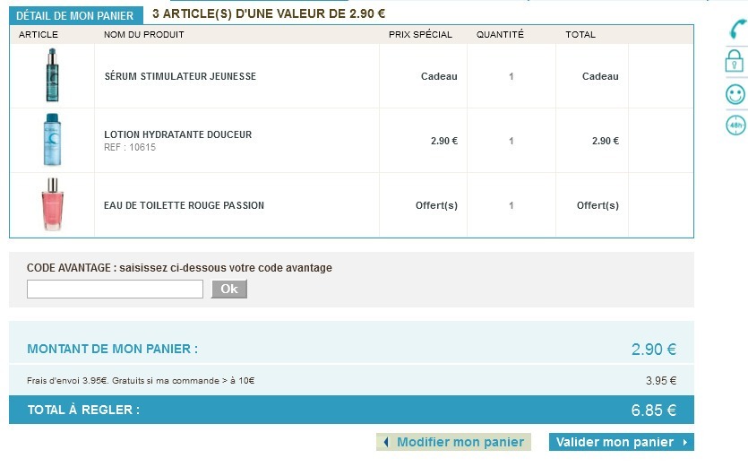 Commande validée pour 6.85€ avec lotion que j'adore, et un parfum + un serum