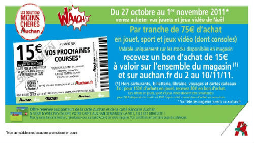 il y a aussi 25% sur la carte auchan sur les lego et les jeux goliath du 27 au 29 octobre