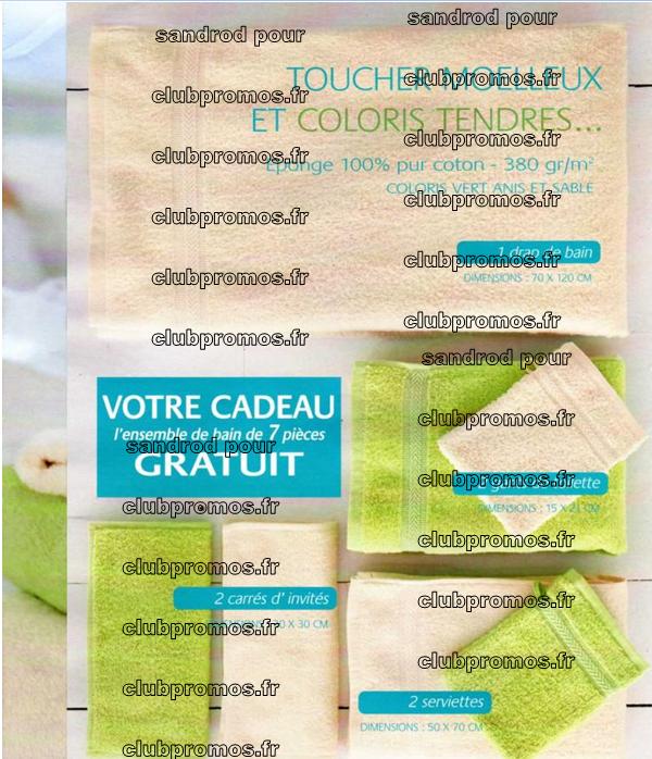 En cadeau : l'ensemble de bain de 7 pièces coloris vert anis et sable