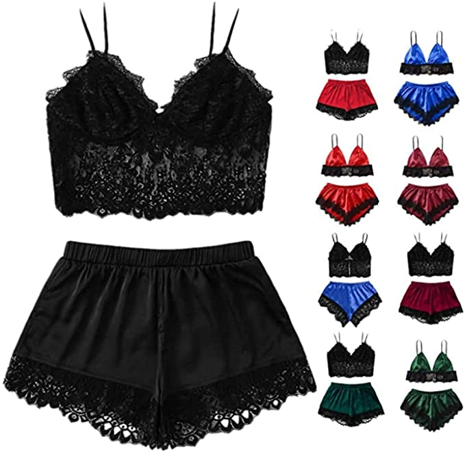 Ensemble Pyjama Femme Sexy Pyjama Femme Satin Short été Vêtements De Nuit Femme Dentelle Haut De Pyjama Femme à Bretelle Col V Ensemble Pyjama Femme Satin Court Dentelle 2 Pièce Cami Chemise De Pyjama : Amazon.fr: Vêtements