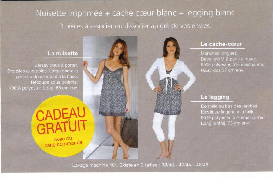 Merci mouton pour ce code et pour ce ke sa intéresse j'ai pris une culotte ivoire a 2euros 5072236 ref j'ai ajouter lensemble 3 pièces ref 5638036 pour 0 euros et le code spéciale pour fdt 11961 Total 2 euros voilà salut