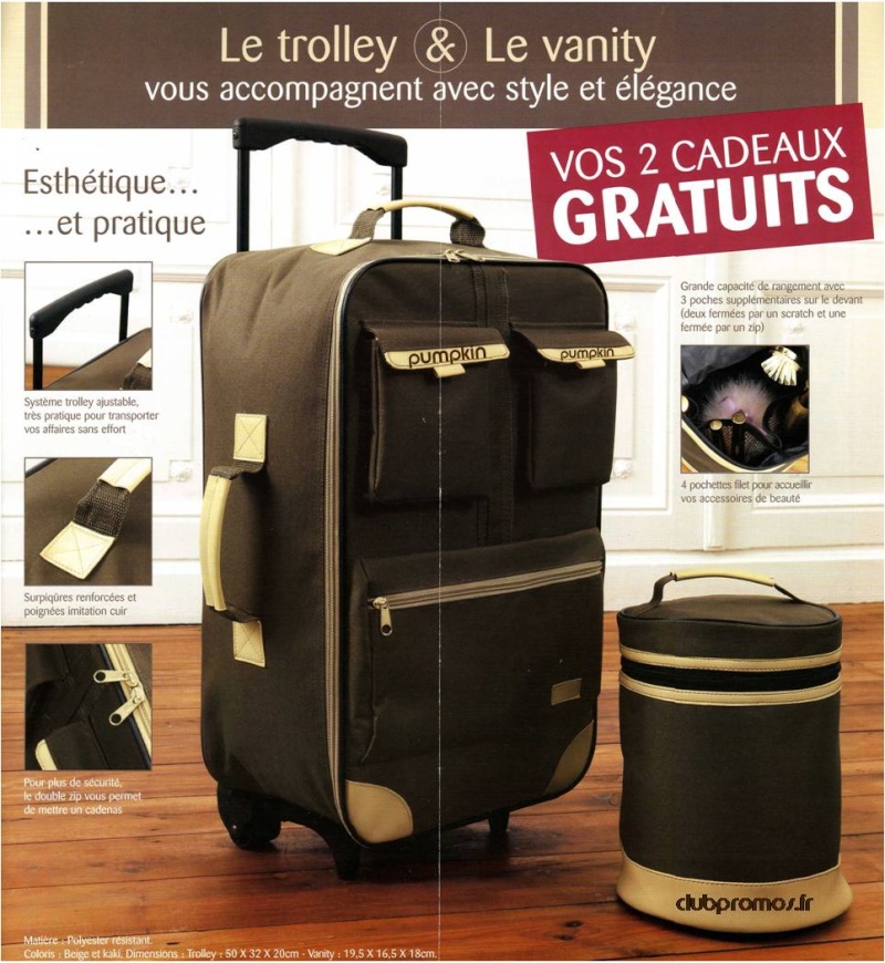 Reçu ce jour d'Anne Weyburn un ensemble "Sublime Evasion" comprenant un trolley et son vanity en polyester de couleur kaki surligné de beige.