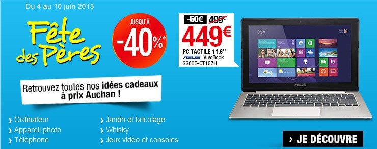 Lancement ce jour de l'opération fête des pères sur Auchan.fr, avec des réduction jusqu'à -40%! L'offre se termine le 10 juin.