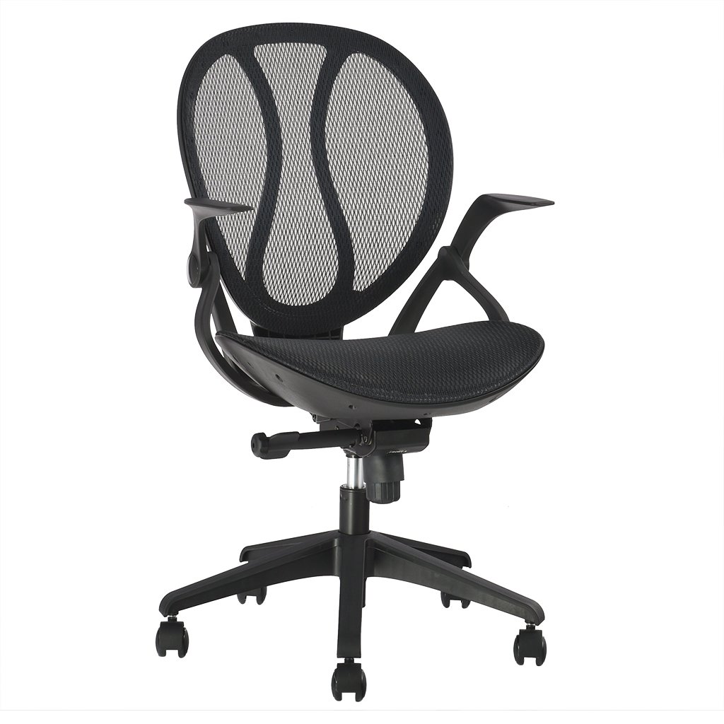 LANGRIA Fauteuil de Bureau Pivotant Exécutif avec Mécanisme d’Inclination, 3 positions de verrouillage, Dossier Moyen-Hauteur, Accoudoirs Pivotants, 140 kg de Capacité (Noir)