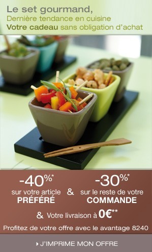 - 40% sur le 1er article et -30% sur le reste de la commande.