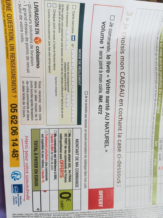 Fleurance nature offre privilège été 2019 pour toute commande en cadeau le livre "votre santé au naturel" volume 1 d'une valeur de 16,90 euros.