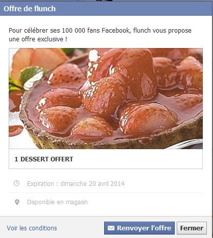 Pour profiter de cette offre spéciale pour féter les 100 000 fans Facebook, il suffit d'en faire la demande sur la page Facebook Flunch et vous recevrez un mail à imprimer.