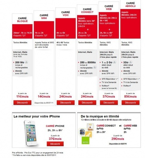 Forfaits Carrés SFR : les formules / Forfaits offres à découvrir !