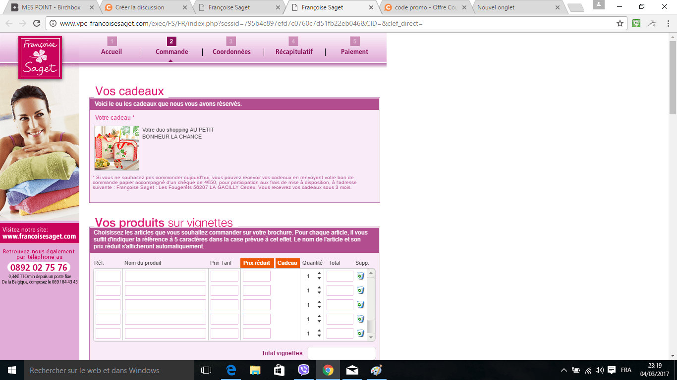 Françoise Saget avec le code promos 69121 (autres codes valides au 21/05/17, voir dans la discussion) :