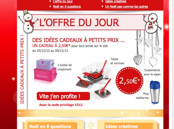 Un petit cadeau en plus : tapas et verrines ; mug isotherme ; 2 boîtes de rangement ; ou suspension étoile pour 2,50 euros. Code privilège : 1511 France Loisirs