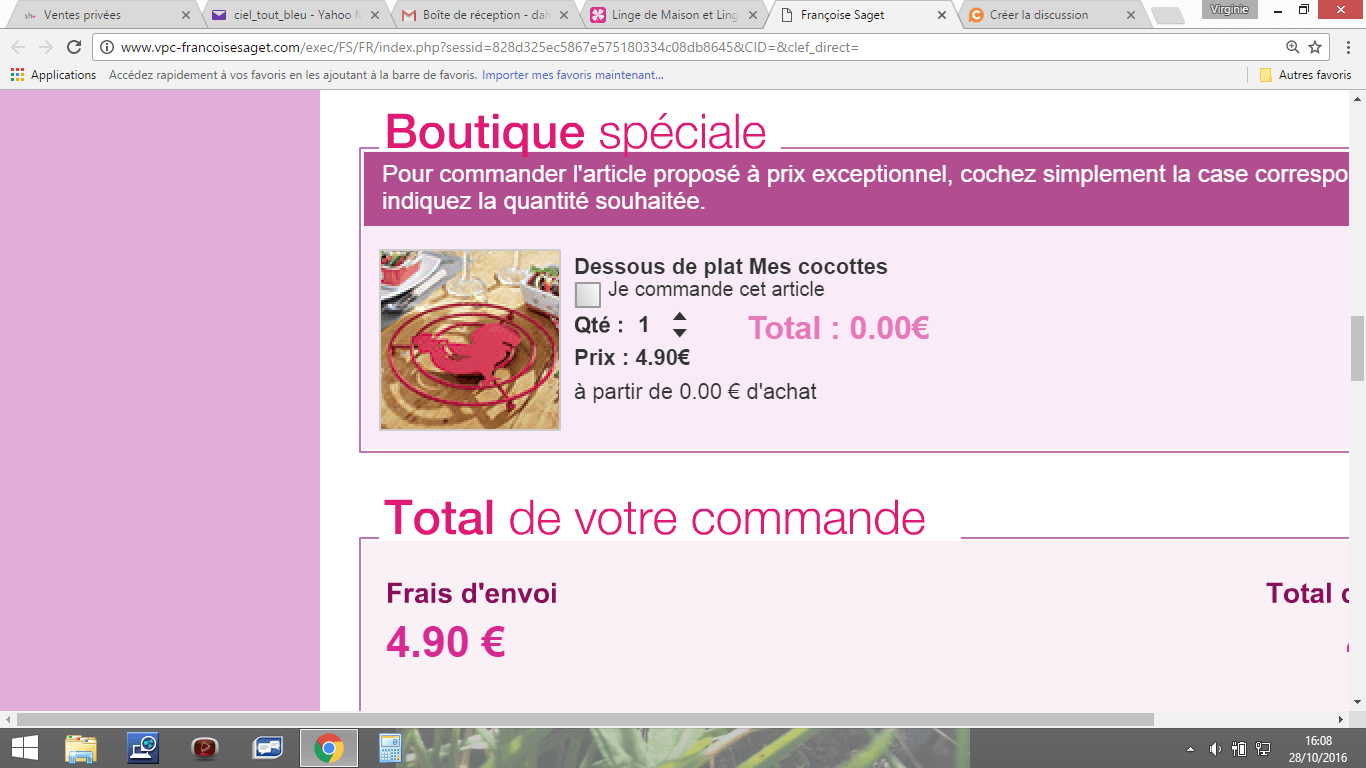 Françoise Saget : offre courrier : 4 plats à gratin mes cocottes + dessous de plat à 4€90