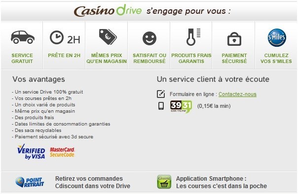 Le premier bonus de 30 €, valable pour un minimum d'achat de 31 €, sera accordé sous forme de remise immédiate sur vos courses Casino Drive en saisissant le code promo envoyé par e-mail après validation du dossier par la Banque du Groupe.