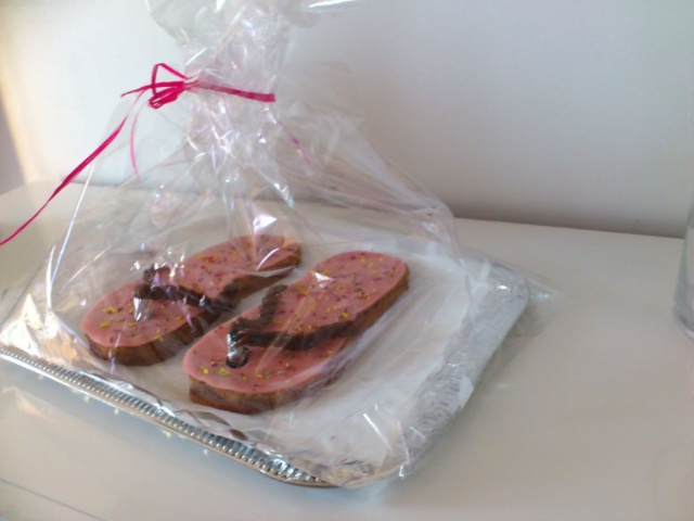 je voudrais partager avec vous le gâteau que j'ai réalisé pour la fête de l'école de ma puce , peut être aussi vous donnez des idées :idea: les enfant aiment beaucoup les gateaux rigolos donc j'ai opte pour une paire de tong au chocolat ,cela fait penser au vacance ,a la plage , au soleil....:arrow:
