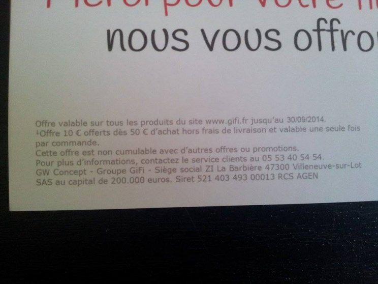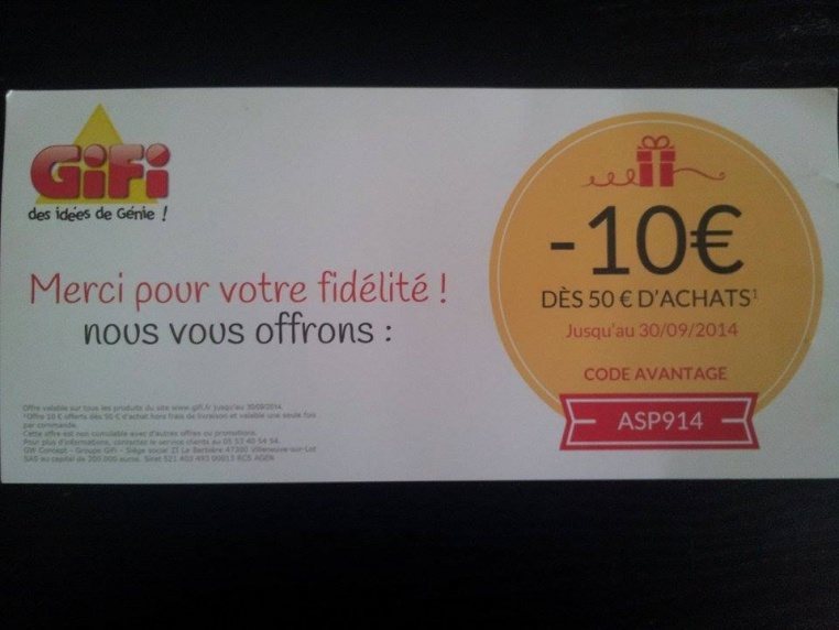 j'ai reçu un carton de chez GIFI offre 10 € dés 50 € cumulable avec d'autres offres ou promo![]()