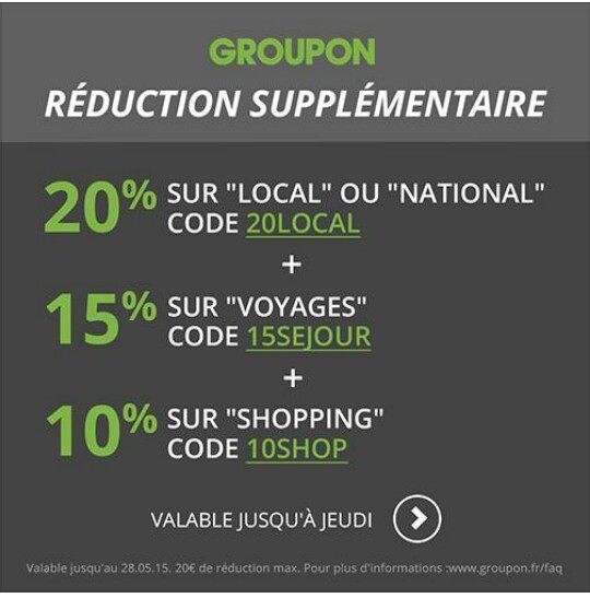 hawaiii Habitué 12 Mars 2012 2 620 664 5 810 26 Mai 2015 #1 Groupon : 3 reductions http://www.groupon.fr/ Fichiers joints IMG_20150526_115130.jpg 34.8 KB · Affichages: 243 Les réactions: Missy