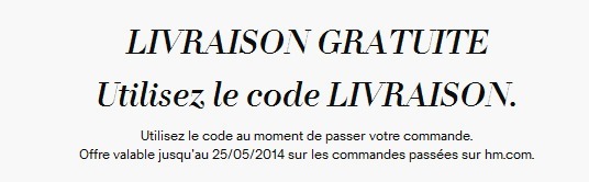 H&M Livraison gratuite jusqu'au 25/05/14