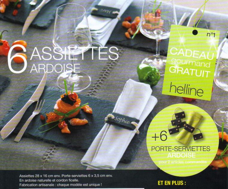 Helline -20% + 6 assiettes en ardoise et porte serviettes