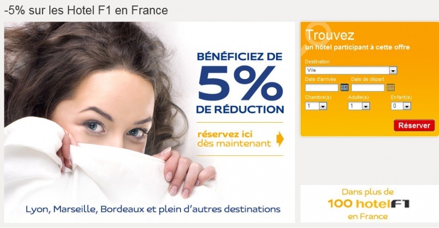 Hotels F1 - 5% de réduction sur les hotels en France.