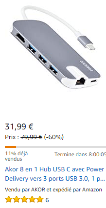 Hub USB C 8 en 1 à 31€99 sur Amazon