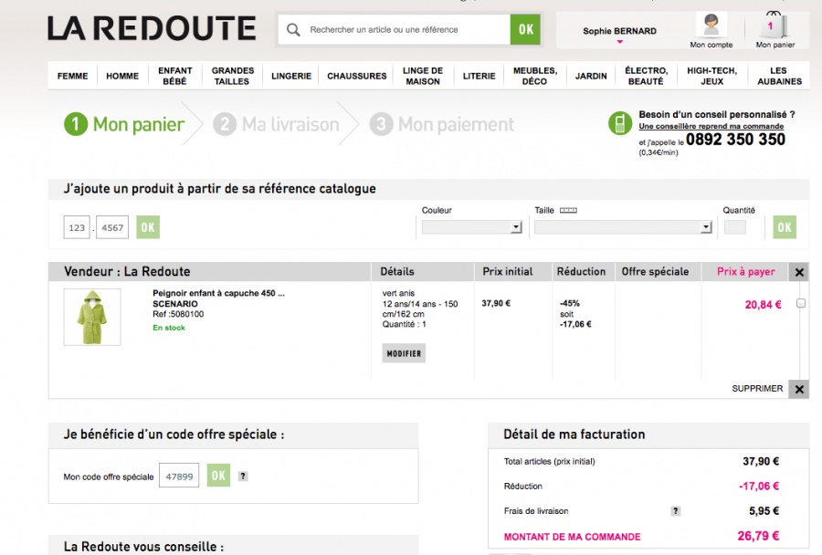 impossible mettre code avantage la redoute ?