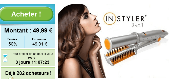 Une offre qui pourrait intéresser certaines ici, le fameux fer à coiffer Instyler est actuellement en vente sur Groupon pour 49.99€ + 5.90€ de frais de port.
