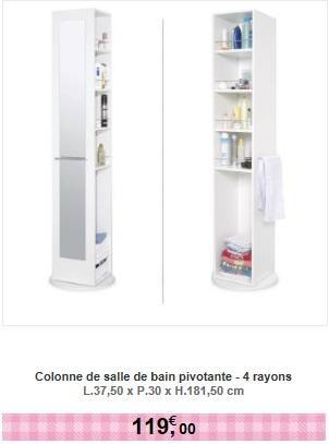 j'ai plus de place dans la salle de bain pour ranger tout ça :icon_rolleyes:J'ai vu sur Tati ce genre de colonne mais je trouve ça encore trop cher 119€ + 19€ de fdp