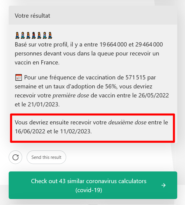 Toi aussi devine ton avenir Coronaviresque sur "le simulateur de queue( non , rien à voir avec une alternative à Pornhub & autres tukif@darkbaby je te vois venir ??) de vaccin"" joliment dénommé, nous sommes d'accord ?