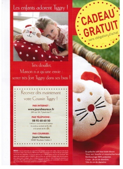 JH cadeau le coussin chat Tiggry + colissimo livraison gratuit en 48hgratuit sans mn d'achat