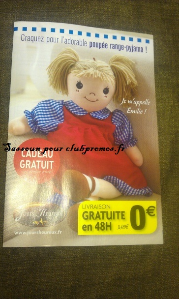 même offre avec le code 5334 (fdp gratuits). Je vous mets les photos de la mystérieuse poupée range-pyjama (ou range-doudou) qui s'appelle Émilie.
