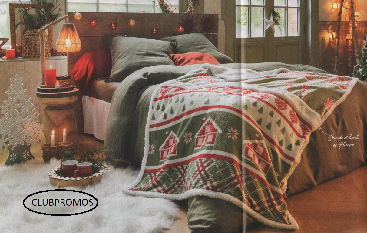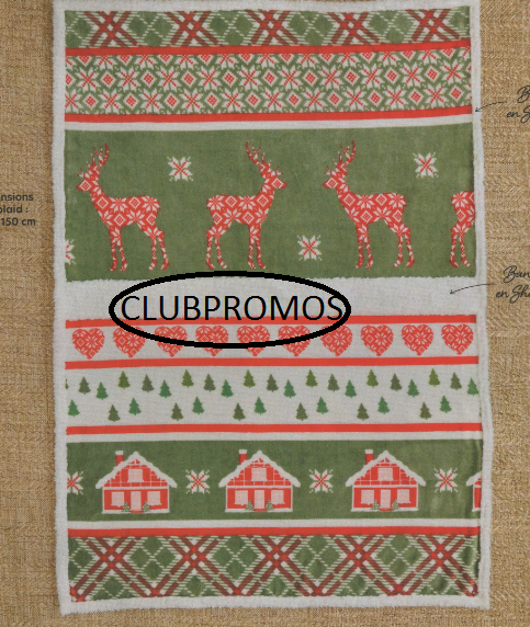 - Plaid imprimé "Rennes de Noël" doublé sherpa : recto = toucher velours et verso = chaleur et moelleux du sherpa. Dimensions = 110 x 150 cm