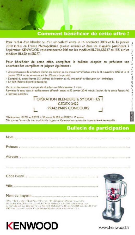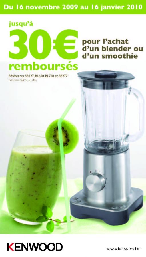 du 16/11/2009 16/01/2010, jusqu'à 30€ remboursés pour l'achat d'un blender ou d'un smoothie (voir conditions)