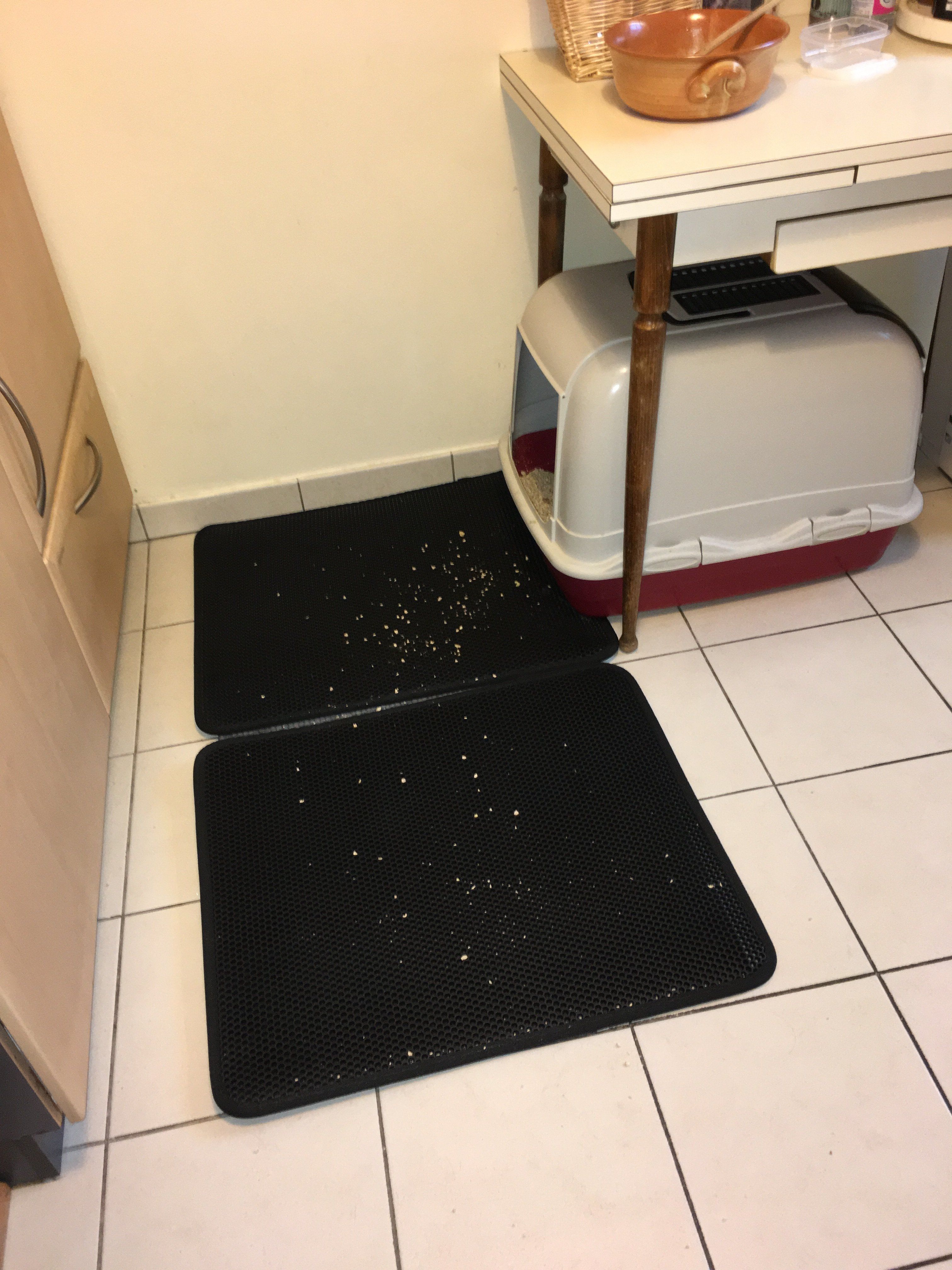 Cela fait plusieurs mois que j'utilise ce tapis (j'en ai acheté 2 car j'ai un grand bac à litière pour 4 chats !) et il est top !