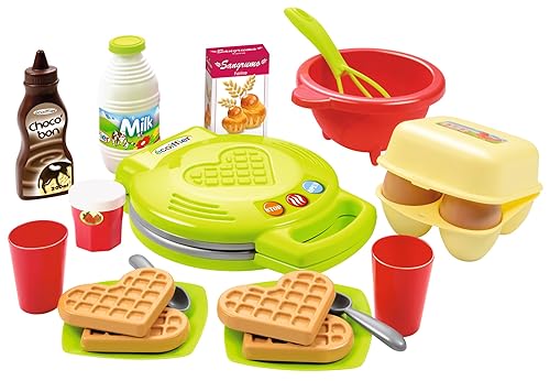 - TOUT CE QU'IL FAUT POUR FAIRE DES GAUFRES : Ce kit comprend 1 gaufrier, 4 gaufres en forme de cœur, de la confiture, du chocolat, de la dînette pour deux, des œufs, du lait, de la farine, 1 saladier, 1 fouet.