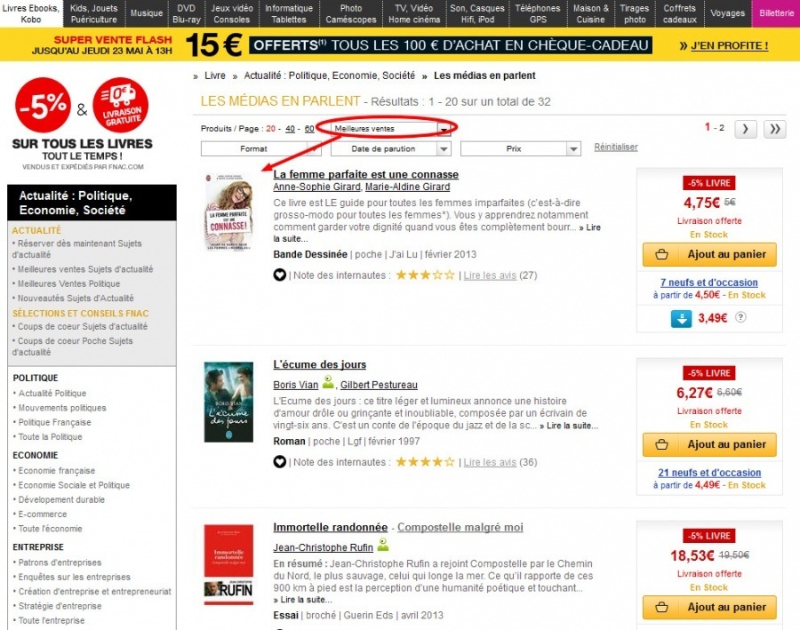 Quoi qu'il en soit, il est N° des vente Fnac ;)