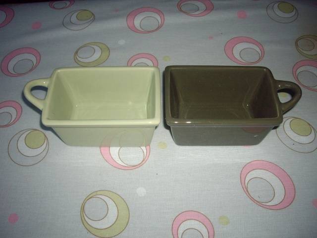 Bon , je vous les décrit : il s'agit de 4 moules à cake rectangles individuels avec une petite anse sur l'un des bords.