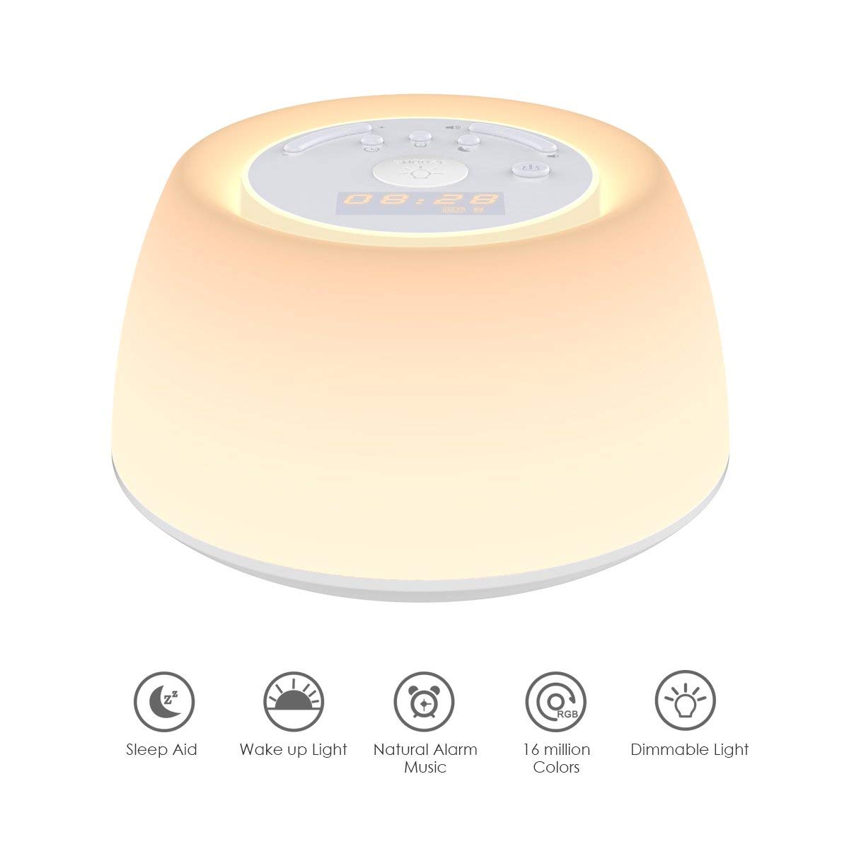 • REVEIL DOUCE: Le voyant de réveil éclairera graduellement de 1% à 100% 30 minutes avant l'heure d'alarme. En outre, quatre musiques naturelles peuvent vous aider à vous sentir rafraîchi, alerte et énergisé toute la journée.
