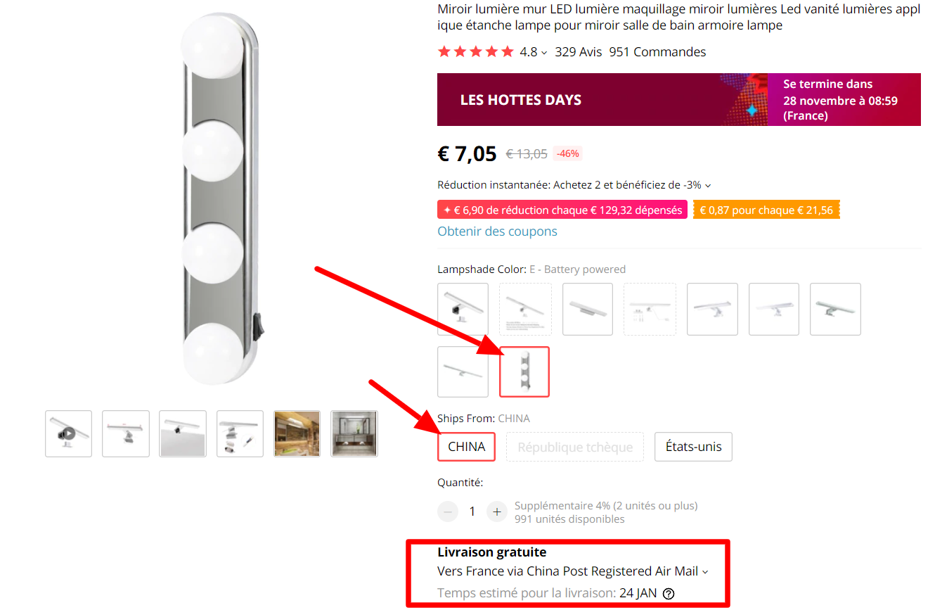 Lampe LED pour miroir de salle de bain à 7,05 € & livraison gratuite