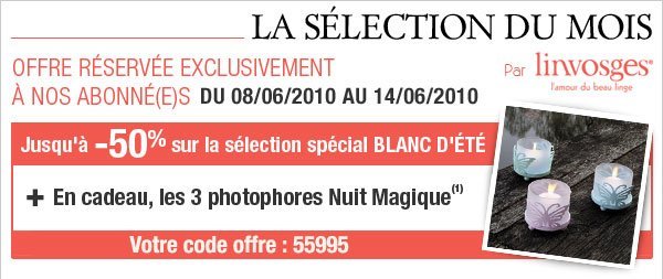 grossemama Habitué 5 Juin 2008 13 611 3 560 10 810 sur une planète imaginaire 8 Juin 2010 #1 code 55995 du 08 au 14.06 Linvosges - linge de maison, linge de lit, linge de bain de qualité.