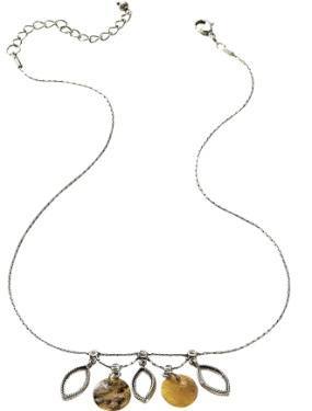 Collier avec pastilles nacre, perles plastique et strass (imit.). Chaîne, fermoir avec chaînette de sécurité métal. Long. 46 cm. Livré dans pochette organdi. reference 3514 047