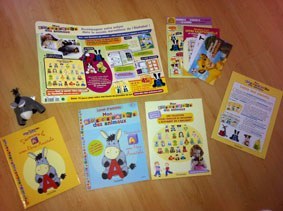 - un joli livre avec une histoire (sur la lettre "A" avec l'âne Anatole), quelques pages sur l'animal Âne, et un imagier pour répéter avec l'enfant les mots avec le son "a"