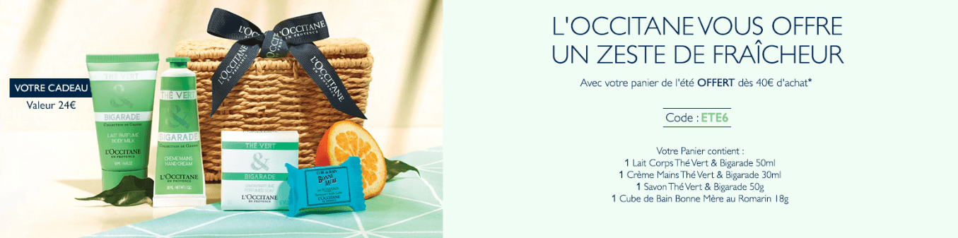 L'Occitane :Panier de l'été offert/40€