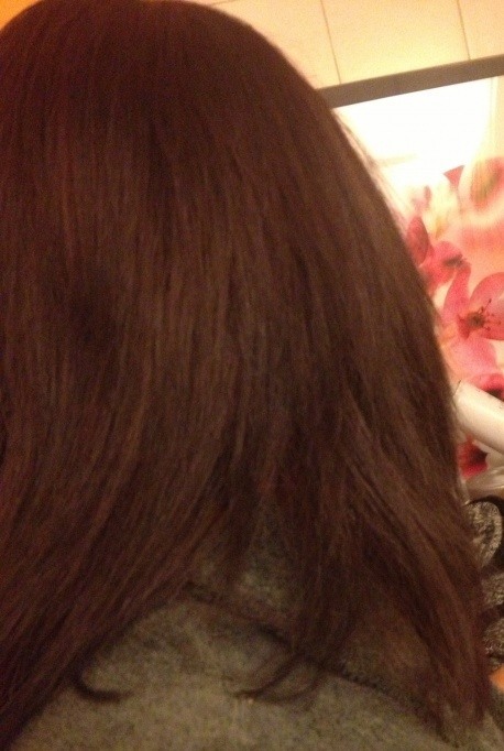 les cheveux sont super méga doux et surtout son efficacité est démontrée par le fait que je n'ai plus la marque laissée par l'usage quotidien d'un élastique qui reste habituellement avec mon lisseur classique rockinbanana (on la voit bien sur la première photo des cheveux)