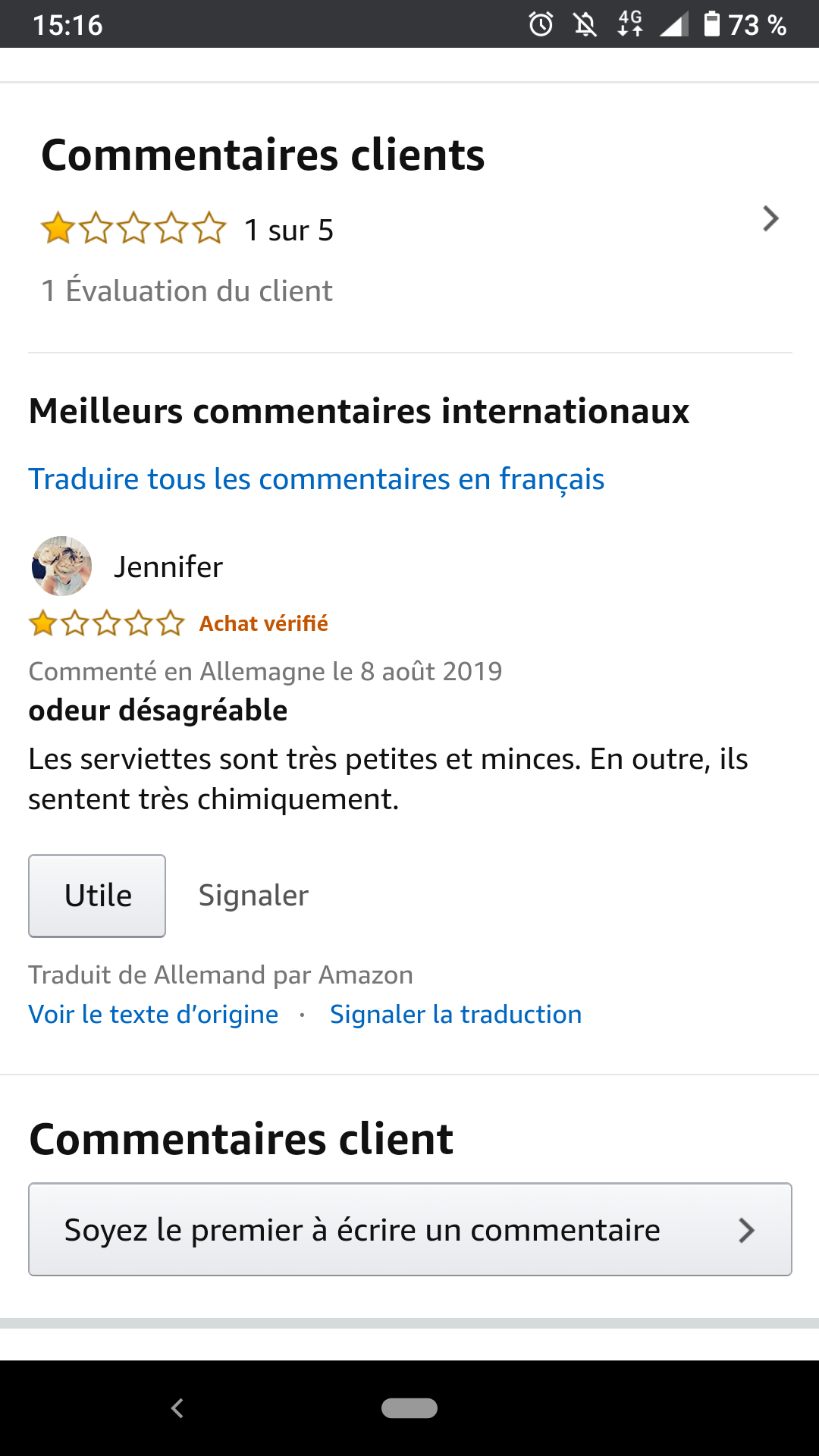 A noter que le seul et unique avis porte sur la finesse et la taille de la serviette, bref pour avoir du frais une épaisse risquerait fort d'être contre-productive !