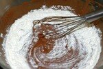 faites fondre le chcolat , ajoutez le sucre , votre beurre fondu(90g) , les oeufs et le sachet sucre vanille + la farine petit a petit