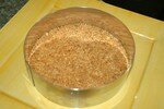 aprés dans un grand bol casser les biscuits et mélanger avec du beurre fondu ,aprés vous les faites tasser dans un cerle patissier , et etaler aprés la créme caramel(la confiture du lait concentré ) et quelques noix