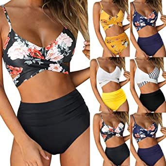Femme Maillot de Bain Deux Pièces Pas Cher Cadeau Femme Halter Réglable Taille Haute Push Up Plage Floral Slim Triangle Bikini Set: Amazon.fr: Vêtements et accessoires